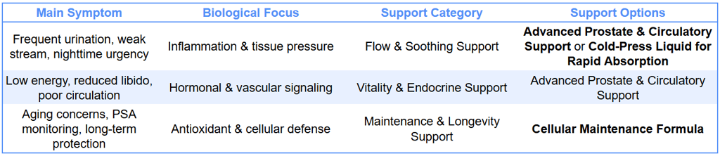 Any persistent urinary symptoms, pain, blood in urine, rapid PSA changes, or erectile dysfunction should be evaluated by a healthcare professional. Supplements are not a replacement for medical diagnosis or treatment.